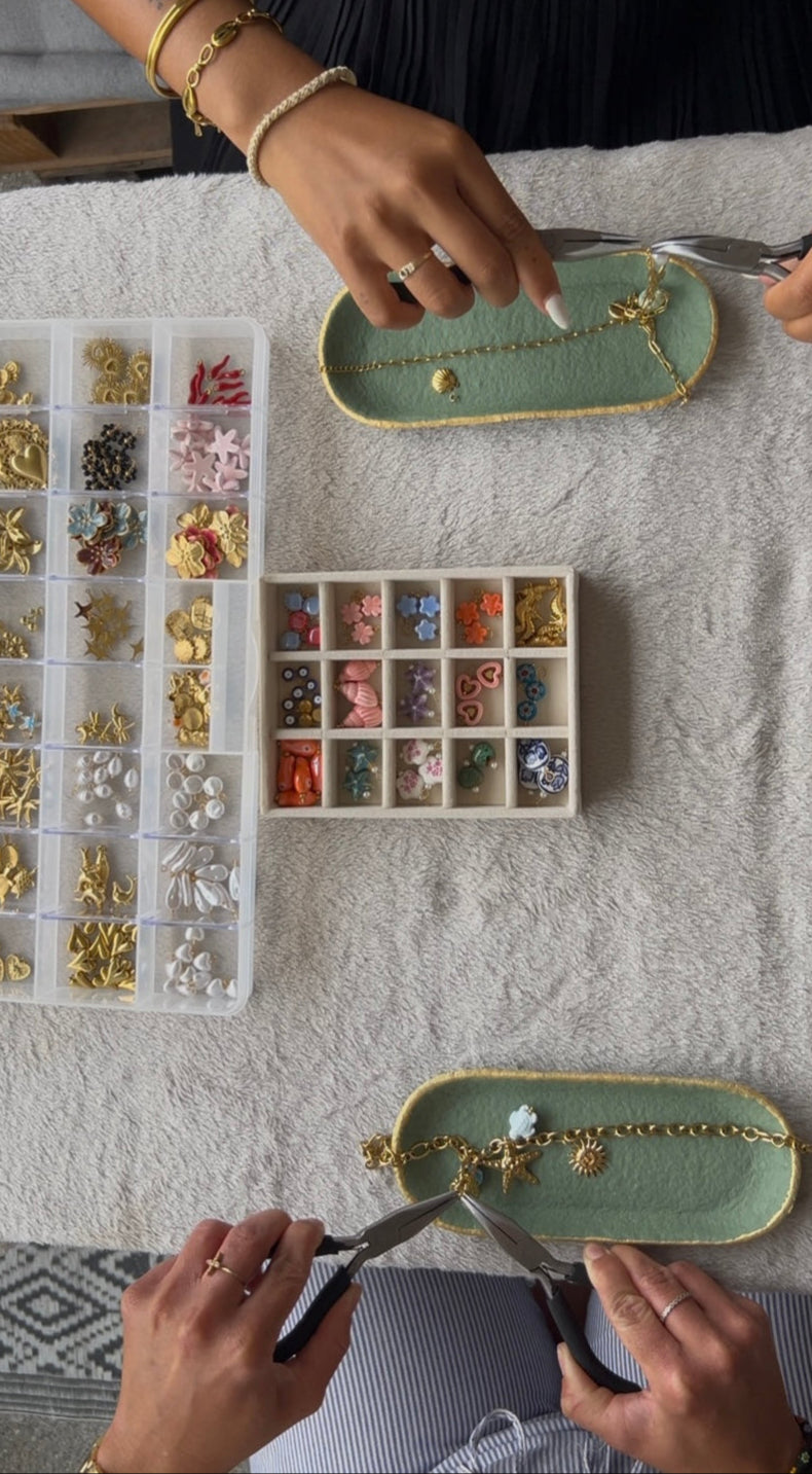 À partir de 4 personnes, on se déplace ou vous accueille pour créer ensemble vos propres bijoux, dans une ambiance détendue et conviviale.